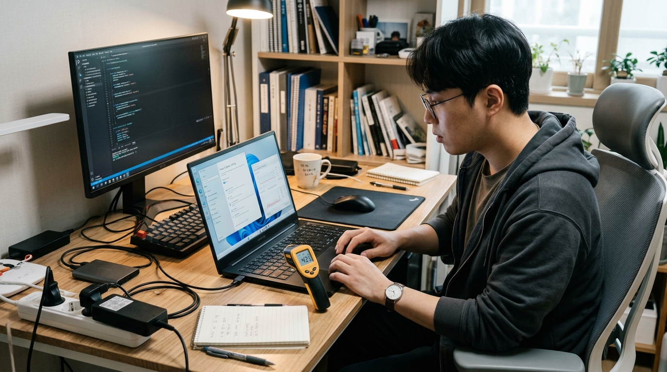 노트북이 유난히 뜨겁게 느껴질 때는 단순히 오래 켜 둬서 그런 것처럼 보일 수 있습니다. 하지만 실제로는 백그라운드 사용량, 통풍 환경, 충전 상태와 성능 모드 같은 조건이 함께 겹치면서 발열이 심해지는 경우가 많습니다.