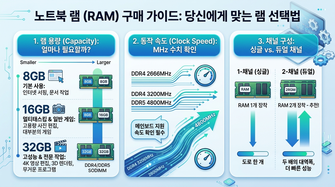 노트북 램 선택 가이드, 용량 클럭속도 1채널 2채널 차이까지 쉽게 정리에서 먼저 체크해야 할 핵심 기준
