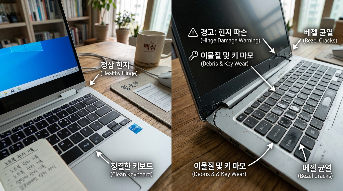 노트북 힌지에서 소리가 날 때 점검해야 할 부분를 비교할 때 놓치기 쉬운 부분
