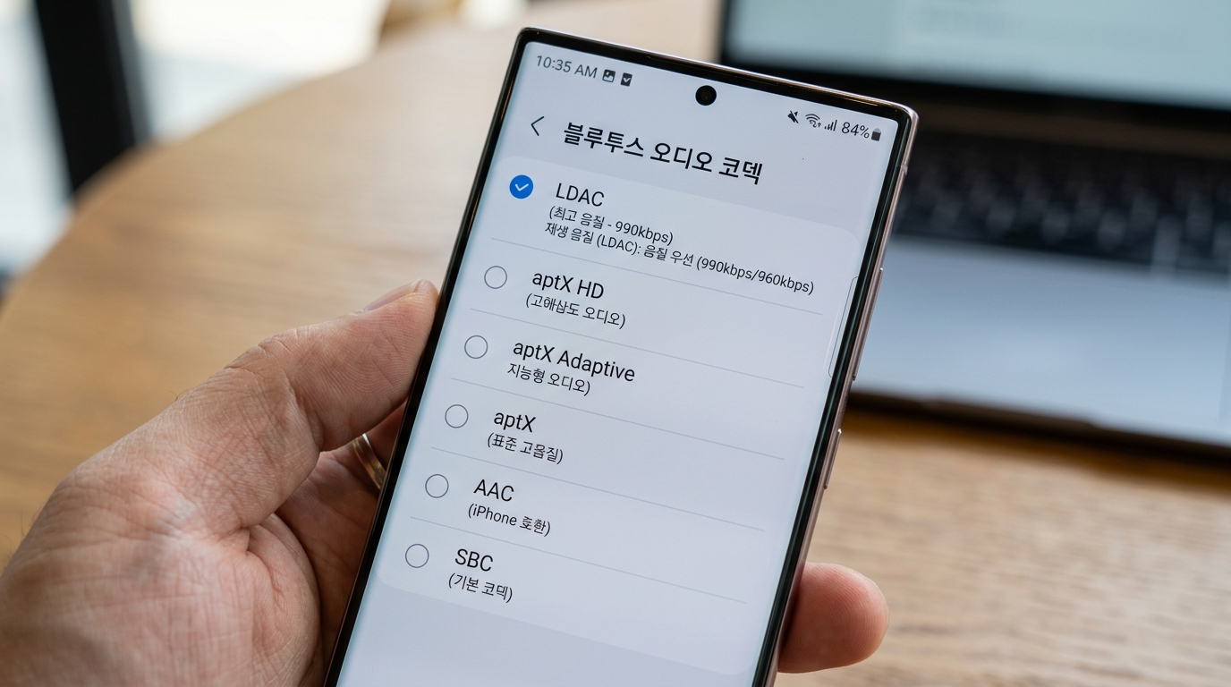 같은 이어폰이라도 코덱 설정에 따라 안정성과 지연이 달라집니다. 안드로이드에서는 개발자 옵션에서 AAC/aptX/LDAC 등 코덱을 확인할 수 있고, 기기 호환이 맞지 않으면 오히려 끊김이 늘어날 수 있습니다. 음질 우선 설정이 항상 정답은 아니며, 통화/영상 시청 중심이라면 안정적인 코덱으로 낮추는 것이 체감이 더 좋습니다.