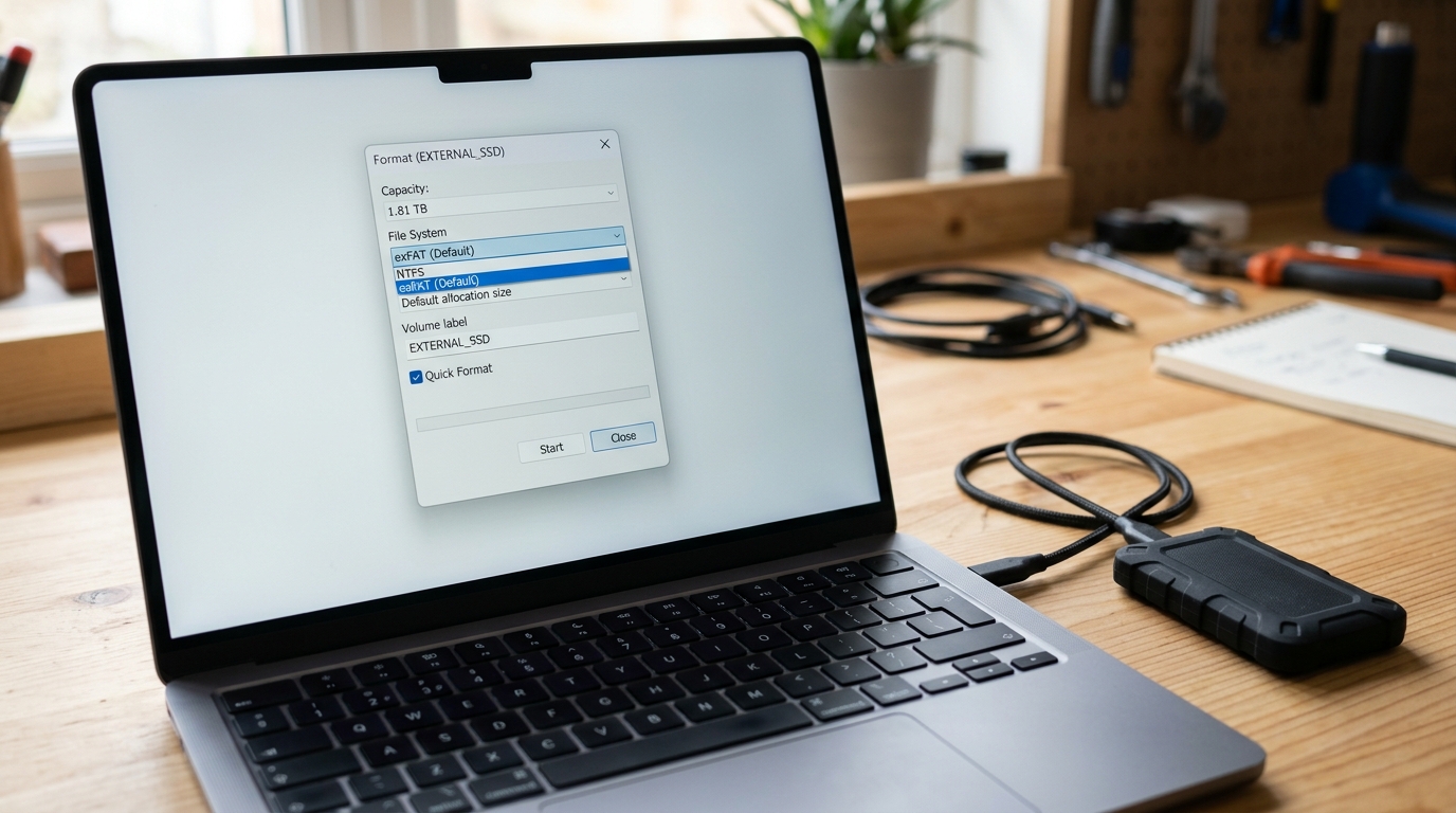 외장 SSD를 처음 연결하면 포맷 방식 선택에서 많이 헷갈립니다. 정답은 사용 환경에 따라 다릅니다. 윈도우/맥을 함께 쓰거나 TV·태블릿 등 다양한 기기에서 읽어야 한다면 exFAT이 무난합니다. 반대로 윈도우만 쓴다면 NTFS가 권한/안정성 측면에서 유리할 수 있습니다.