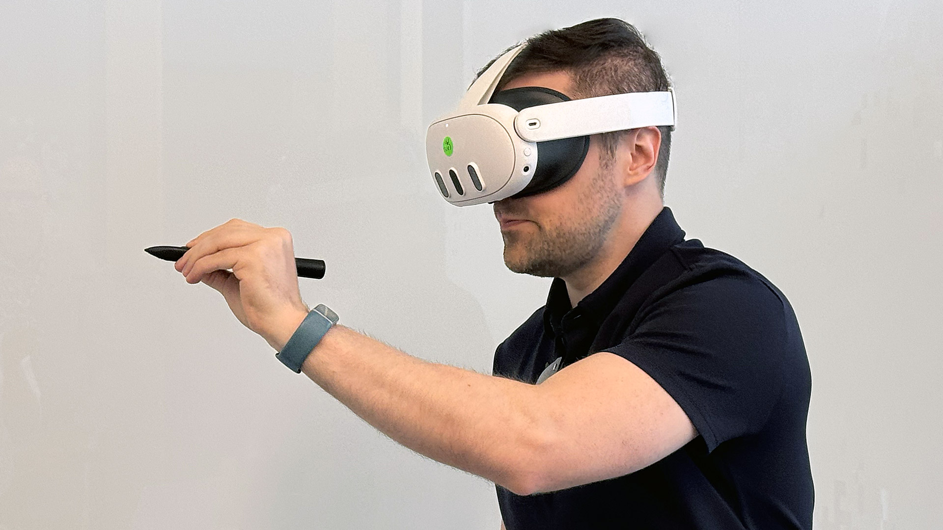 Logitech MX Ink는 메타 퀘스트(Meta Quest)와 같은 혼합 현실(MR) 헤드셋을 위한 스타일러스로, 디지털 및 물리적 공간에서 자연스럽고 정밀한 입력을 제공하도록 설계되었습니다. 작동 원리는 다음과 같습니다:
